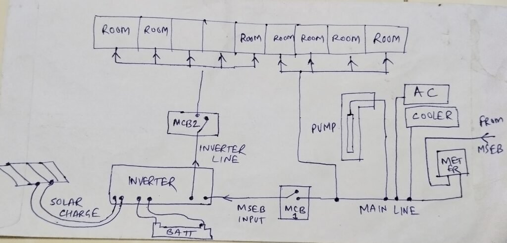 इन्वर्टरच्या क्षमतेपेक्षा जास्त वीज त्याच्या आउटपुट मधून वापरली जाणार नाही या करता इन्व्हर्टरला जोडलेल्या खोल्या आणि महावितरणच्या वायरला थेट जोडलेली अन्य उपकरणे व काही खोल्या यांची विभागणी करायला हवी.